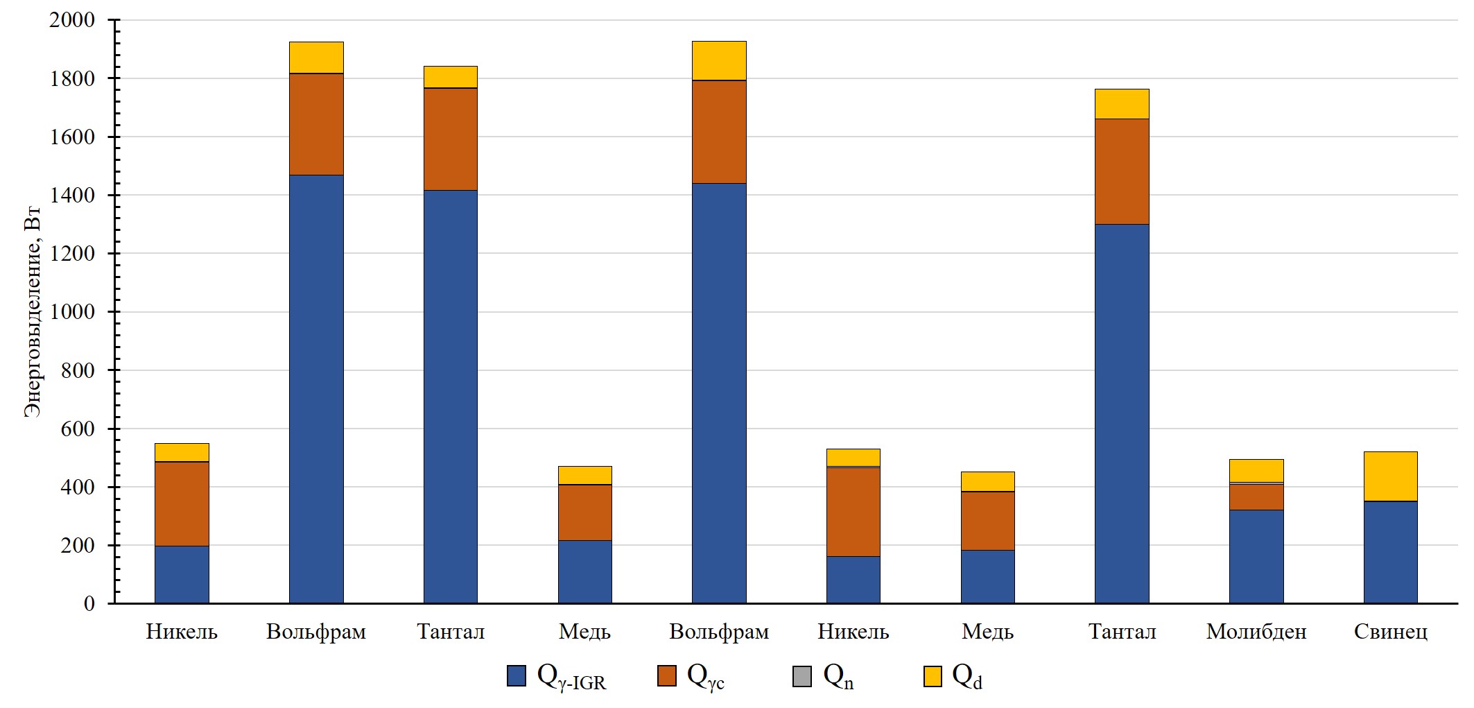 Ужесточение требований к методическому обеспечению внутриреакторных экспериментов определяет необходимость повышения качества прогнозирования важных с точки зрения безопасности параметров облучаемых экспериментальных устройств. Для качественного прогнозирования температуры элементов устройств при их облучении в реакторе ИГР в данной работе представлен анализ механизмов радиационного разогрева под воздействием нейтронного и гамма-полей реактора. Проведены расчеты по определению вклада различных нейтронно-физических процессов в результирующий радиационный разогрев образцов конструкционных материалов при их планируемом облучении в реакторе ИГР, определено объемное распределение энерговыделения в образцах конструкционных материалов.